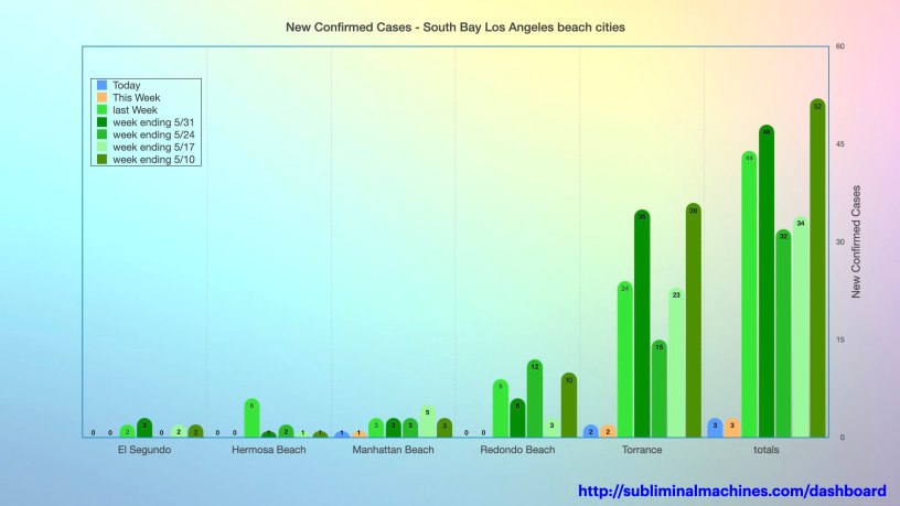 Mondays are usually slow and the start of this week is certainly no exception. Manhattan Beach had just one new confirmed case and Torrance had two today.