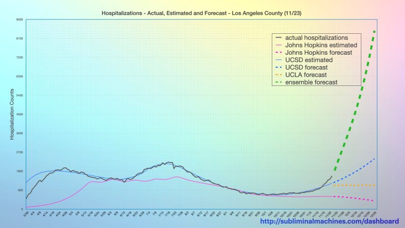 So now you know. Whom would have thought such an unlikely, unprecedented forecast of hospitalized COVID-19 patients of this magnitude four weeks into the future could be remotely accurate? Perhaps these experts with their predictive models actually know what they are talking about? And if we can accept this, then perhaps we should also stop second guessing the experts and heed their recommendations and public safety orders?