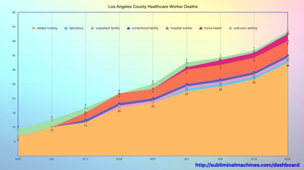 Chart of distribution of Deaths among Los Angeles County Healthcare Workers by their type of workplace.