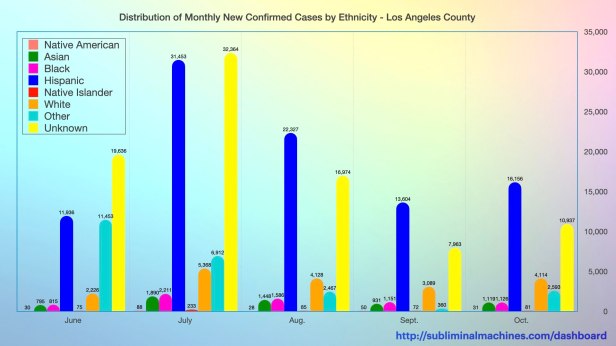 New! Chart of monthly distribution of New Confirmed Cases by Ethnicity for Los Angeles County as a whole.